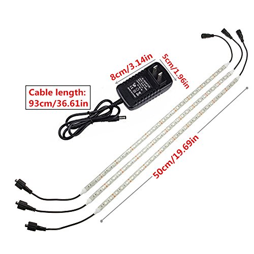 ★【HOW TO USE】3 strips grow light bar,50cm/strip, 6W/strip,DC 12V power supply adapter.you need connect male to female end,you can hook all of them together in one long string. The last one plugged into the cord that goes into the wall outlet. you can just use 1 or 2 strip. Plug in to turn on and unplug to turn off.